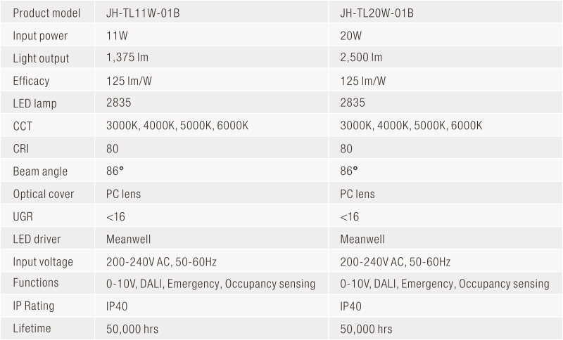 - • Optional function: 0-10V or DALI dimmable, emergency or occupancy sensing.