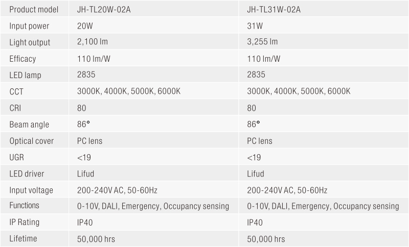 - • Optional function: 0-10V or DALI dimmable, emergency or occupancy sensing.