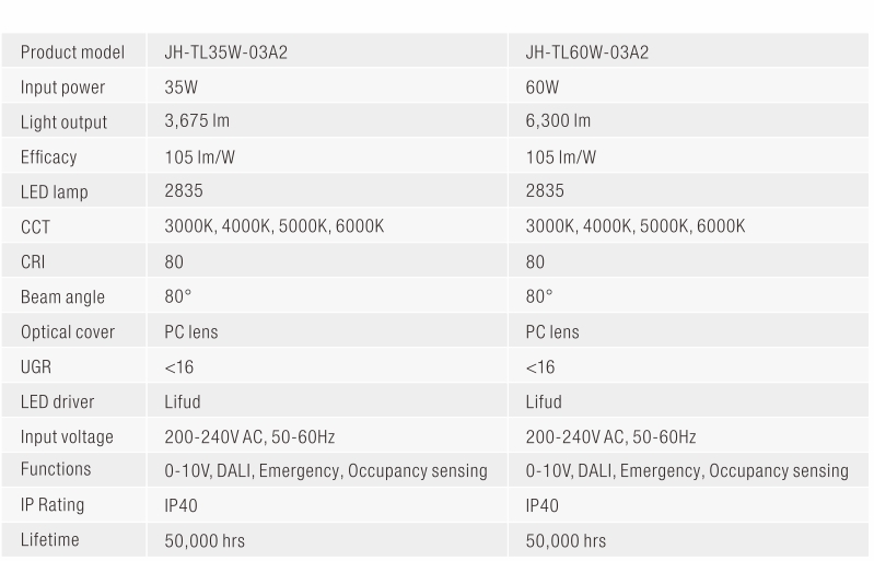 - • Optional function:0-10V or DALI dimmable, emergency or occupancy sensing.