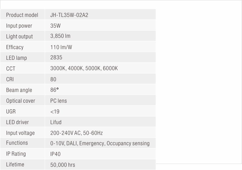 - • Ideal for office lighting, visual comfort can be guaranteed.
