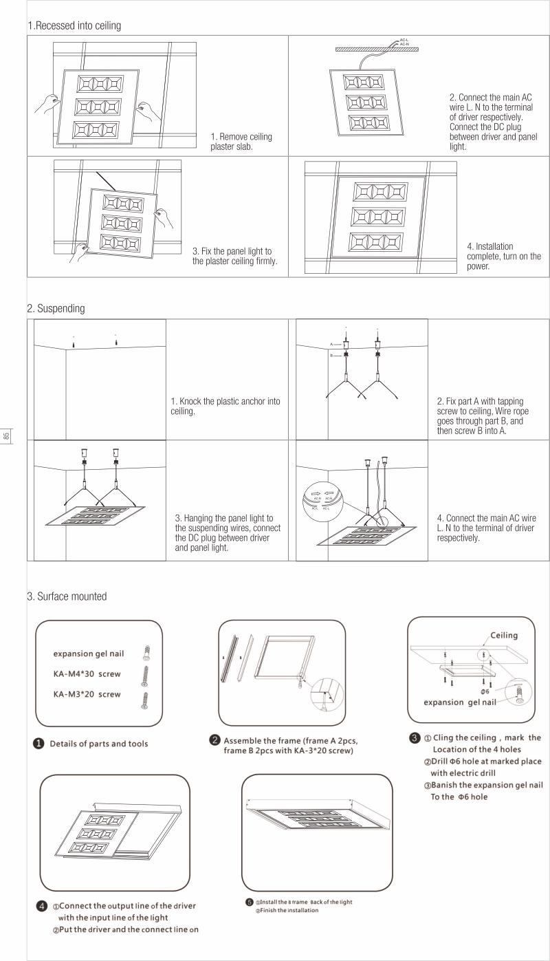 - • Easy installation, recessed/suspended/surface mounted.