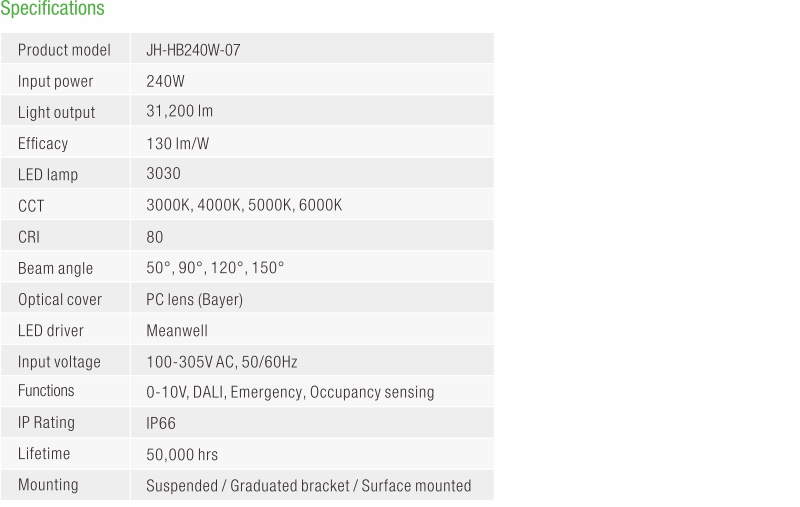 - • Up to 130 Im/W, a direct replacement for 250W/400W MH high bay.