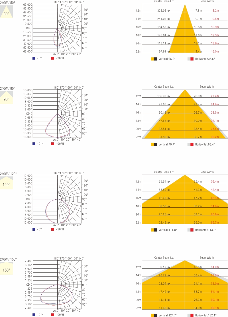 - • 50°,90°,120° (clear/frosted lens),150°beams are avaialble for various applications.