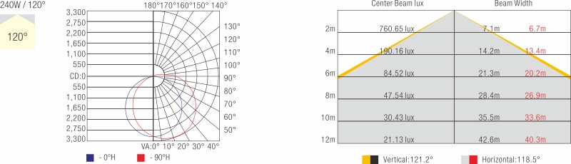 - • 240W LED version is a direct replacement for 400W HID luminaire, saving energy up to 60%.