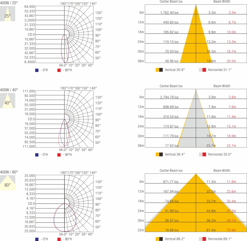 - • Beam angles: 25°, 40° asymmetrical, 40°,80°,120°,30x70°,70x140°.